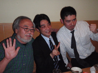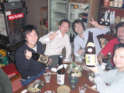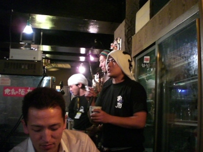 御協力頂いた酒商山田さん、遠くは東京からお越し頂いた八丈興発の小宮山杜氏さん。 焼き鳥屋楽車の小山さんです。 小山さんは始めてですがなぜかプライベートで奥様の10年以上前から知っています。不思議な出会いでした・・・