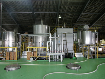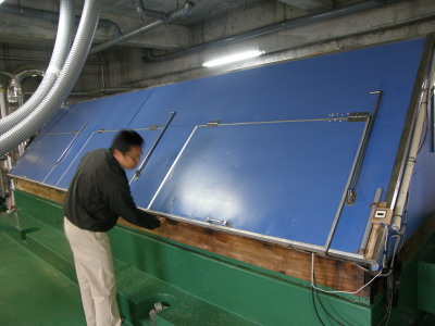 三階建てで上からドラム、三角棚、1次仕込みと 順番に落として行きます。合理的ですね。