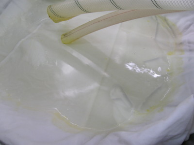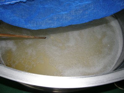 蒸留後の原酒です。木綿で濾過しています。 この黄色いのが油分です。 うまそっ!