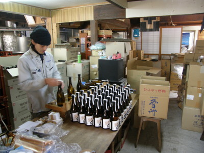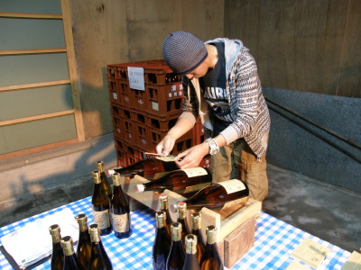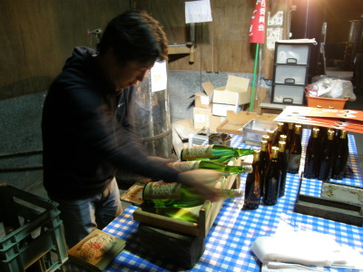たいぞ〜さんのラベル張りです。手慣れたもんです。 さすがベテラン!