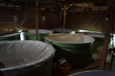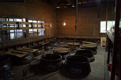 13 08 13(火) 酎心蔵ツアー2013 鹿児島県指宿市の吉永酒造さんに行きました。 昨年から行きたくて仕方なかった蔵元さんです。 利八で有名な蔵元さんです。 生産量300石です。 利八白 利八黒 利八ジョイホワイト 陶眠利八 など