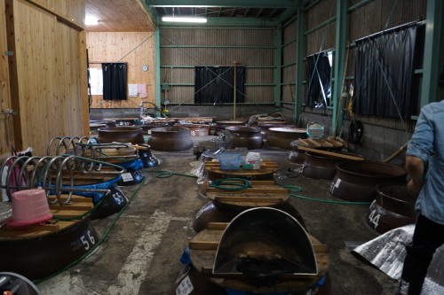 15 11 06(金) 酎心蔵ツアー2015 仕込みシーズン 宮崎県 日南にやってきました! 1次、2次共に全て甕仕込みです。 甑と麹室全て手造りです。 醤油醸造器と同じ蒸器を使うのが個性的な蔵元さんです。 日南娘 銀の星