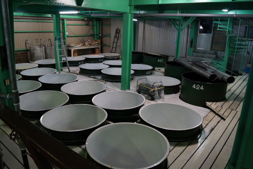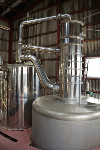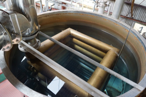 河内源一郎蒸留器 渡りが3経路あります。 蒸留アルコール度数により経路を切り替えるそうです。