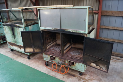 これ焼き芋器です。 4基ありました。 なんと! 1基で20kgしか焼けないそうです。 仕込時期は24時間連続で焼き続けるそうです。