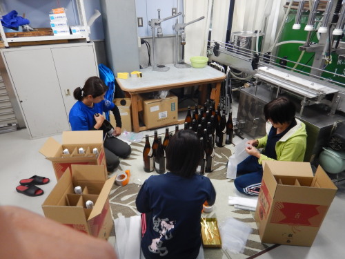 瓶詰、打栓、ラベル貼、箱詰場