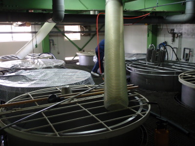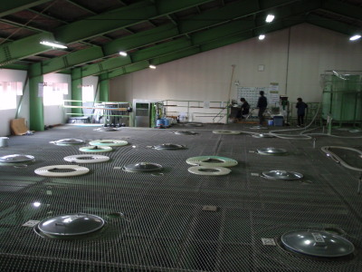 芋の出荷前の貯蔵タンクです。 割り水して数か月で出荷されます。