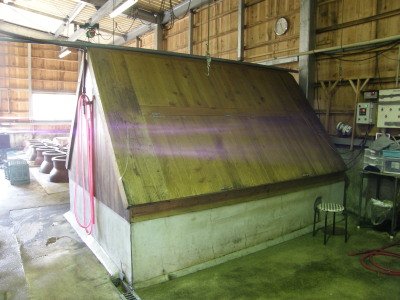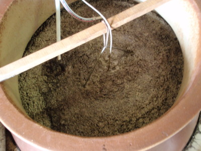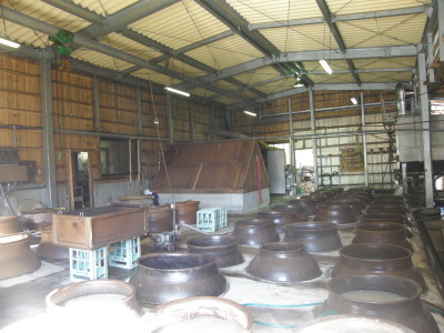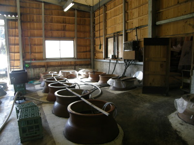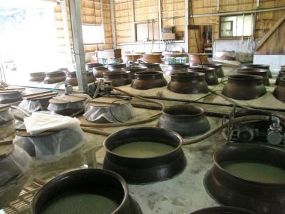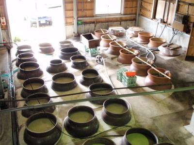 一次、二次とも甕壷仕込みです 右一次用甕で左が二次用甕です。 |