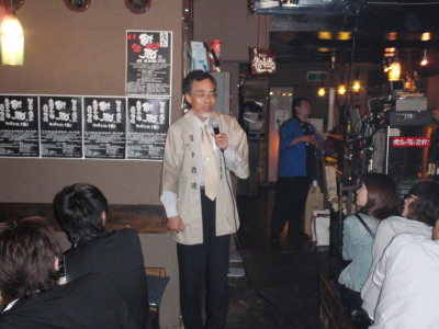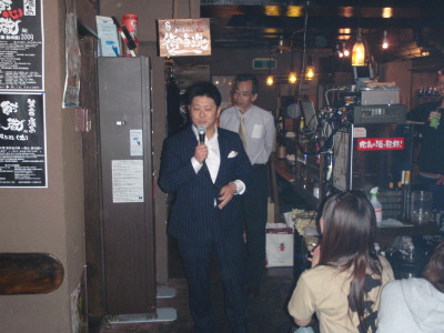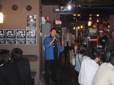 | 酎心蔵スタート! 先ずはごあいさつから・・・ 尾込商店の瀧山さん、そして国分酒造の安田杜氏