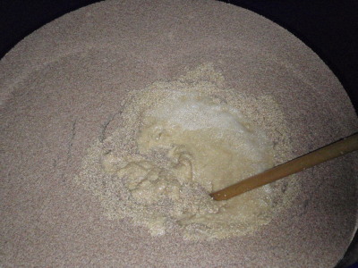 もろみです。プクプクと元気に発酵しています。 写真では分かり難いのが残念です。