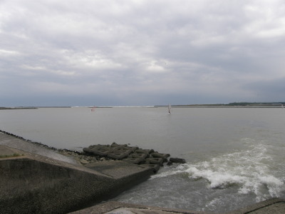 海??から見た出艇場所です。 ホント河口です。 近くでは釣り人がイッパイ!