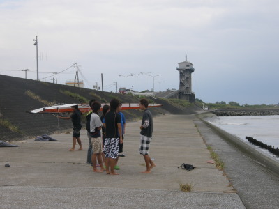 宮崎大学ウインドサーフィン部のみなさんです☆ 元気やわ〜っ! また、一緒に乗ってね(^_-)-☆
