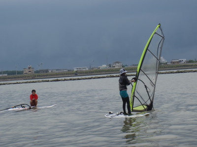 | 11 09 27(火) 宮崎に来ました。 予報が出てたのでウキウキ気分で道具を持って行きました。 宮崎大学ののぞみちゃんと合流して、青島パークホテル前の青島ビーチに寄って その後、大淀川河口に移動し、宮崎大学のウインドサーフィン部の部活に参加させて頂きました。 初めて乗る河口です。 スゴイのは、出艇場所がビーチではなくて石のスロープです。 ツルツル滑れし、ビーチングの際に道具を確実に傷つけます。 一人では乗れない怖い場所です。 BUT!仲間が居ればどこでも楽しくウインドが出来ると言うことを改めて教えて貰いました。 宮崎大学ウインドサーフィン部の皆さん、一緒に乗って貰ってサンクス アロット! |