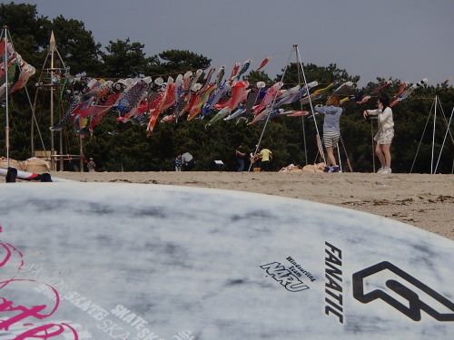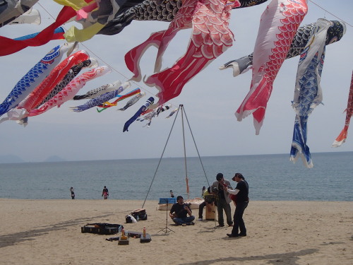 鯉のぼりプロジェクト 今日は三線とウクレレによる沖縄ミュージックで 暖かく南国気分な虹ケ浜を盛り上げていました。