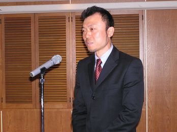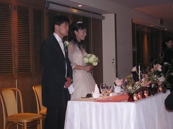 こちら18年来の友人&同級生からのスピーチ いや〜、緊張したみたいですよ・・・ 良かったぁ、まだ髪の毛がなんとかあるうちで (笑)