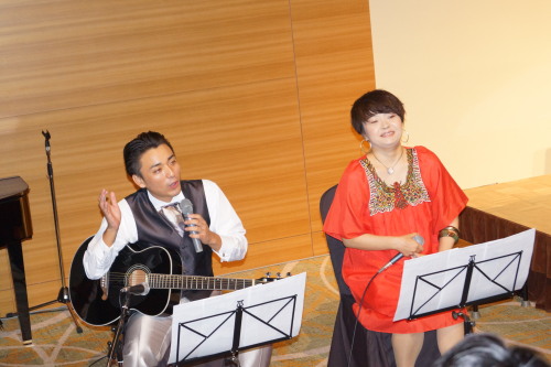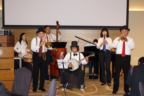 | ウェイディングパーティの開催です。 先ずはジャズバンドの演奏からスタート。 うす暗い感じのライトニングでシックで大人のパーティでした。 ステキでした☆
