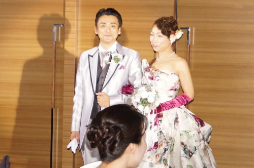 ナオちゃんのお色直し後のカラードレス。 レッドワインが飲みたくなる鮮やかなワインカラーでした。