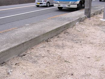 臨時駐車場、この段差をなくしてここから車が入れるようにします。 とりあえずは海から板2枚、大木1本取って来ました。 土はアツコに協力依頼中