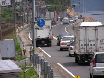 爆音がしたので外に出たらトラックが一台停車してました。 パンクのようです。乗用車では考えられませんよね〜。 トラックは自力で待避所へ。渋滞はなし。