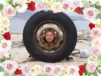 | 宮島での記念撮影!(なんでタイヤが・・・)