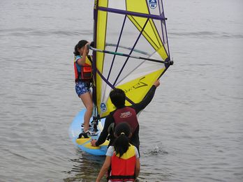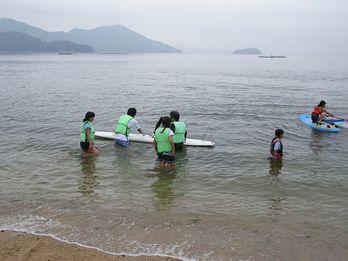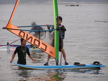 06 07 23(日) 今日は広島BSCで小中学生を対象にしたウインドサーフィン体験スクールでした。BSCは毎年、積極的にウインドの |