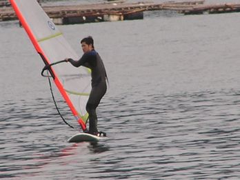 2008 01 19(土)北東6.3アンダー のち 北東~南西 微風春に滋賀に就職するアフガン。行くまでにプレーニングするぞと言わんばかりにかなり気合入ってます!卒研作成の合間に海で特訓です!朝10時前までは北東で吹いてましたが、すぐに落ちていきました・・・