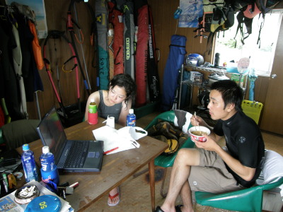 初参加のみぃやんと3回目のタカノブ。 まずは仲良くスクールのDVD鑑賞です。