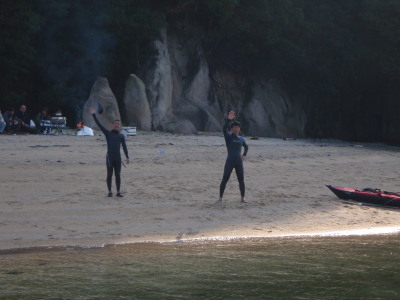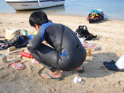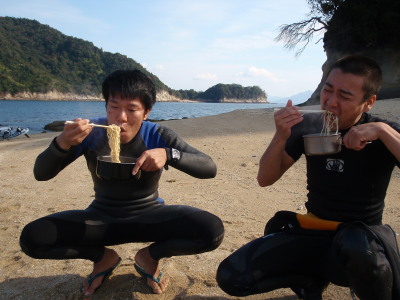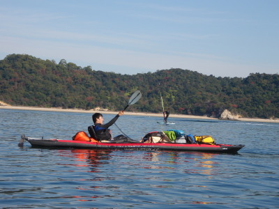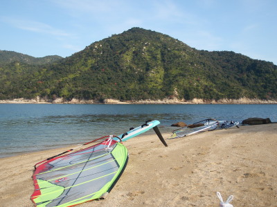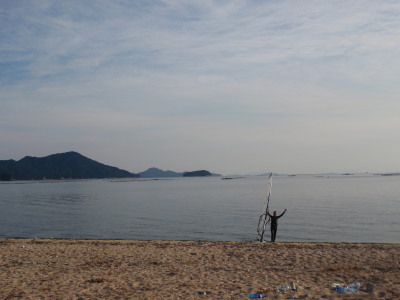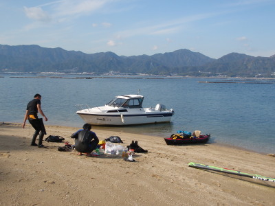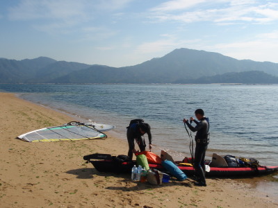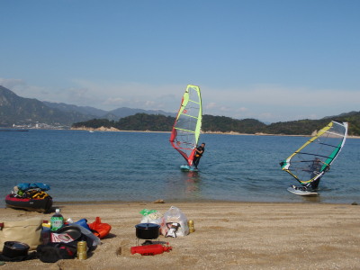 | 2008 11 23(日) 北東1〜2m/sのち南西0〜1m/s ゴジー、タカノブ、41で可部島へウインドキャンプに行きました。 41はデイキャンプ、ゴジーとタカノブはお泊りです。 可部島は宮島西、ナルーの真正面に位置する周長1kmぐらいの小さな無人島です。 ナルーからは約5kmです。 微風の風の中、行きは1.5〜2時間。帰りは1時間ぐらいでした。 見えてて近さそうですが意外に遠かったです。 キャンプするにはサイコー!の島です! いいなぁ〜俺も泊まりたかったな〜〜! |
