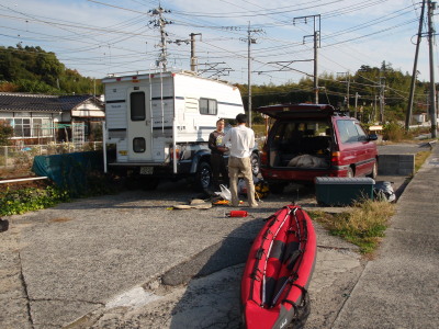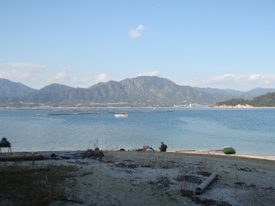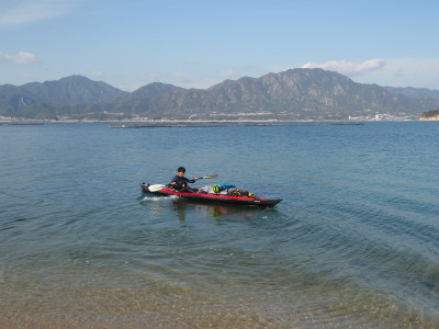 日本に上陸!!! 奥のちっちゃい島がオーストラリアに通じる可部島です。 お疲れ様!