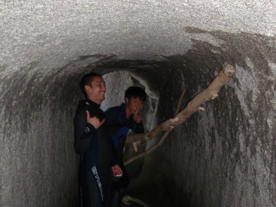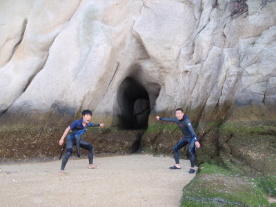 この洞窟が、あのオーストラリアへの抜け道です。 こちらオーストラリアから上陸!