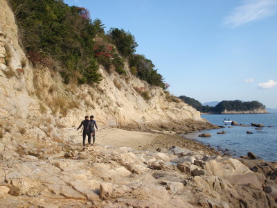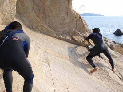 | 可部島の裏側です。なんか恐竜が出て来そうな岩ばかりです自然の凄さを感じる独特の岩ばかりです。 グレイト!エクスペアレンスです! こんな経験、初めて!