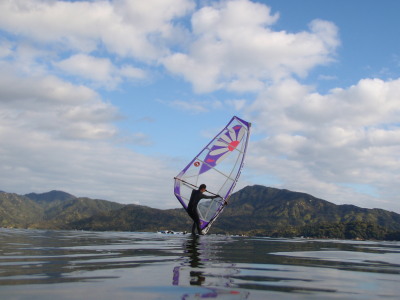 | 2009 01 03(土) 南西無風 2009初乗りです。 タカノブと一緒にナルーで初乗りしました。 風は無風でしたが海に出ることでナルーで身を清め、新年を迎えた気になります。 やっぱ、海に入ると気持ちいいです☆