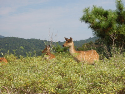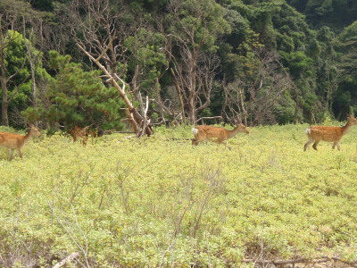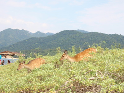 観光地の鹿とは違い、ここのナル裏の鹿は近寄ると 逃げて行きます。 りえちゃん、シカさんに向かって、何か言ってます。 って、鹿にリエ語は通じませんよ。(笑)