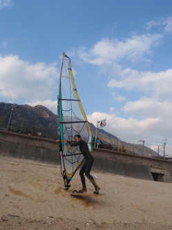 2010 01 16(土) 北東1〜3m/s のち南東 無風〜1m/s 昨年末に片づけた道具の処分に行きました。今はゴミも簡単には扱えないですね。 社会勉強させて頂きました。 今日は、ハナさんがナルードライ来て初乗りです! そして、ゴジーもヨネさんも初乗りですね☆ 風の吹かないのんびりとした一日でした・・・ |