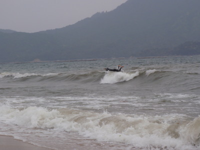 吹きました! 13時ぐらいから沖からウネリが入り始め、風も徐々に上がりました。