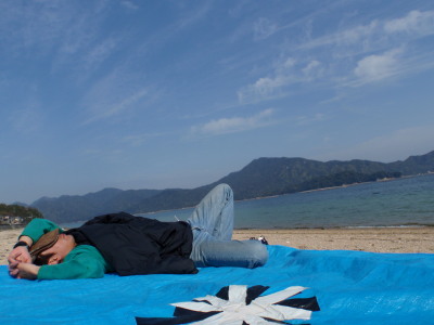 2010 04 04(日) 北東1~3のち南1~2m/s 今日はナルーのメンバーと一緒にお花見でした。 天気が良くて気持ち良い絶好のお花見日和でした☆ 大竹の亀居城でお花見した後、ナルーでまったりとお昼寝&ダーツで〆ました。 春ですね〜♪