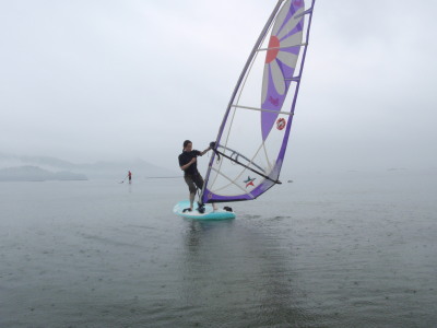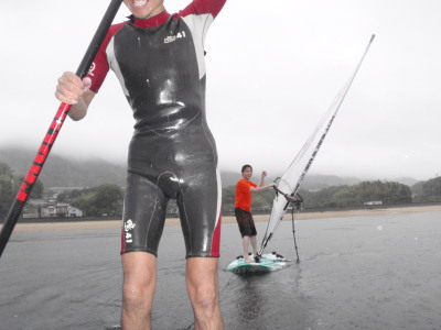 SUPでウインド牽引です。 無風の時はSUPは最強の板ですね。