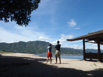 ビーチバレー楽しそう♪ 風のないナルーサイコー! 笑っ