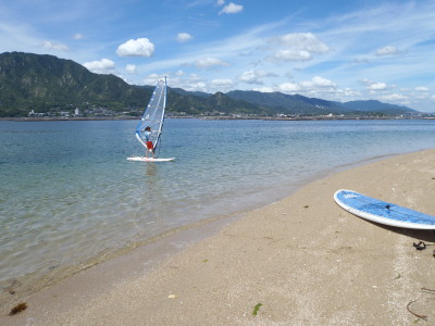2010 08 28(土) 南0〜2m/s 宮浜温泉まつりウインドサーフィンスクール 前日です。 このために大阪からちえみちゃんがまたまたやって来ました♪ 宮島観光に一緒に行き、その夜は皆でBBQして楽しい夜を過ごしました☆ |