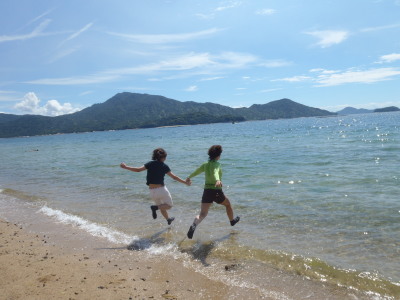 ジョシ3人旅・・・ ここ、一番好きな須屋浦スポットです。 まさにボラカイ島を思い浮かべます・・・ 行ったことないけど(笑)