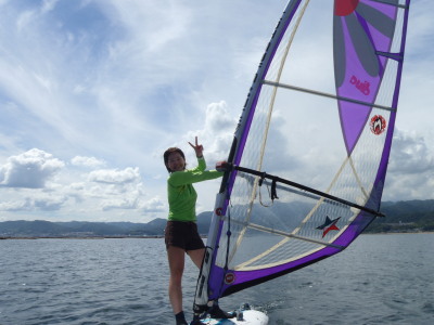 2010 09 05(日) 南1〜6m/s 吹きました!! 6.5完璧でした! おナル様到来!♪ 今日は山口の周南市から1時間半かけて電車でみぃやんの幼馴染のちぃたんがやってきました! とても元気で、ウインドサーフィンも2回目のセールアップでポートスタボー共の乗っちゃいました。 さすが、小柄ながらバレー部出身です! その後は、皆で宮島観光しました! 広島のナルーに来たら、じぇったい!裏宮島観光ですね!☆ |
