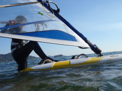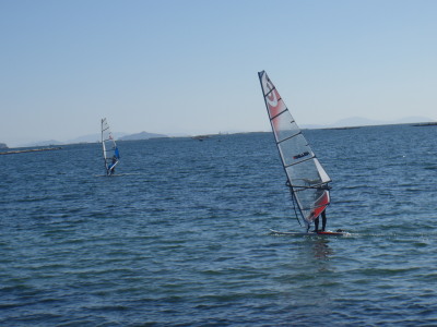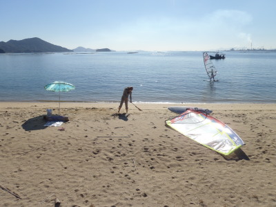 りえちゃん、微風の中でビーチスタートの特訓です。 練習するにも難しい一日ながらよく頑張ってました。