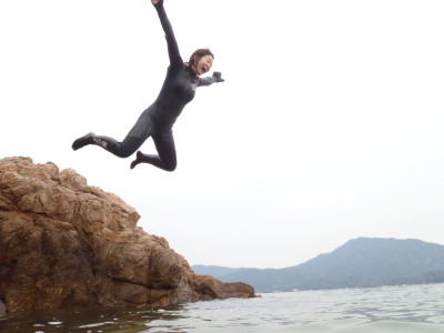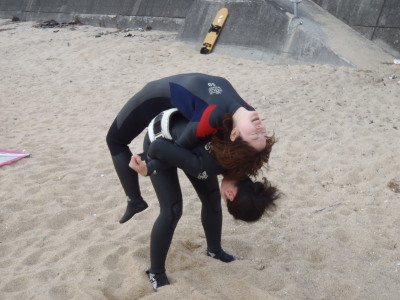 わ〜〜い! 楽しい、真冬のダイブ! 飛べ〜〜!笑っ |