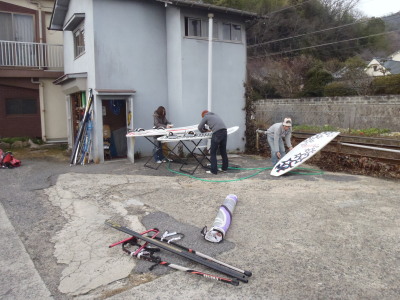 2011 02 13(日) 南東のち南のち東 微風 完璧に海快晴の予報どうりでした☆ 今日はちえみちゃんが大阪からやって来て、ゴジー&タカノブカップルも今年初ナルーでした♪ で!シンヤ、バッシーの20th達も初ナルーに出現! どうも皆さん明けましておめでとうございました♪ 今日はウインドサーフィンの陸トレの特訓で盛り上がりました! |