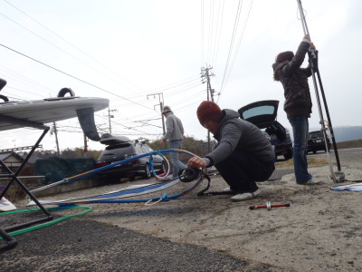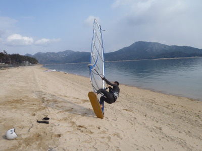 風のない時は陸トレ特訓です! 画像クリックでYouTobeに入ります♪ ゴジーの華麗なフォワードループをどうぞ!(笑) |