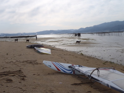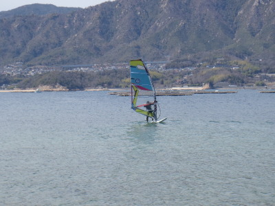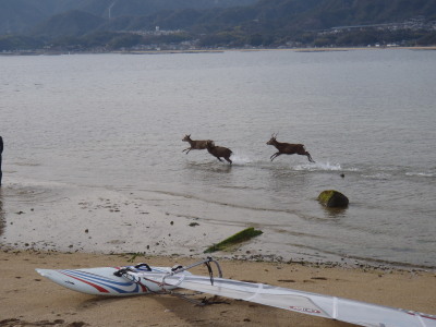 宮島 須屋浦ビーチまでもう少しです。 右サイドの南西の風でとても走りやすかったです。 |