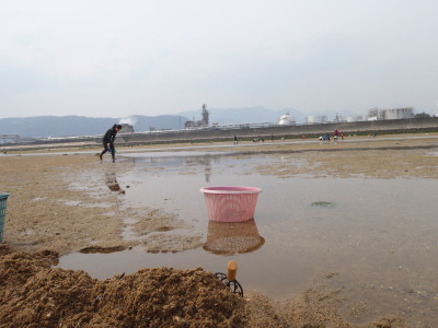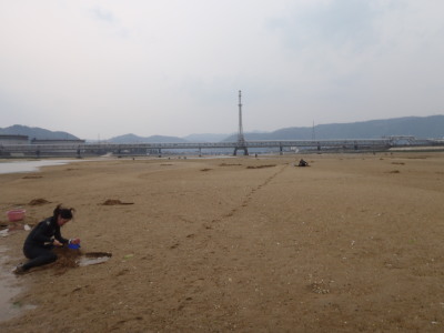 ここ、知る人ぞ知る貝堀りのメッカです。 大潮の時は大竹人で賑わいます。 |