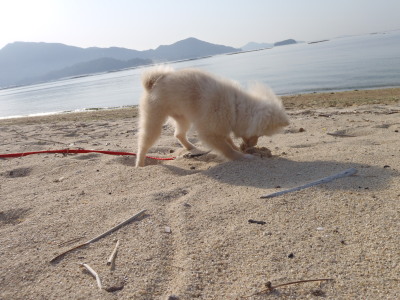 きなこ、初ナルーです♪ 砂浜に同化してきなこがどこにいるか分かりません(笑)