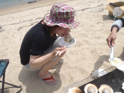 ヨネさんが陸から取ってきた新鮮なホタテです☆ こんな、新鮮でおっきなホタテは初めてです。 甘くて、メッチャ美味しかったです☆ |