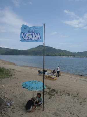 強風にたなびくナルーフラッグ カッコイイ!! みなさん、お疲れさまでした!