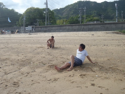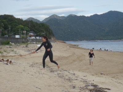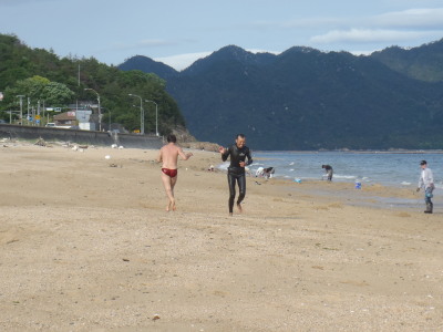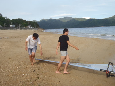 ナルートライアスロンスタート! ルールは簡単。 スイム、バイク、ランのバイクの代わりにウインドサーフィン します。 今回は、ちょっと試しにウインド+ランVSスイム+ランで勝負! |